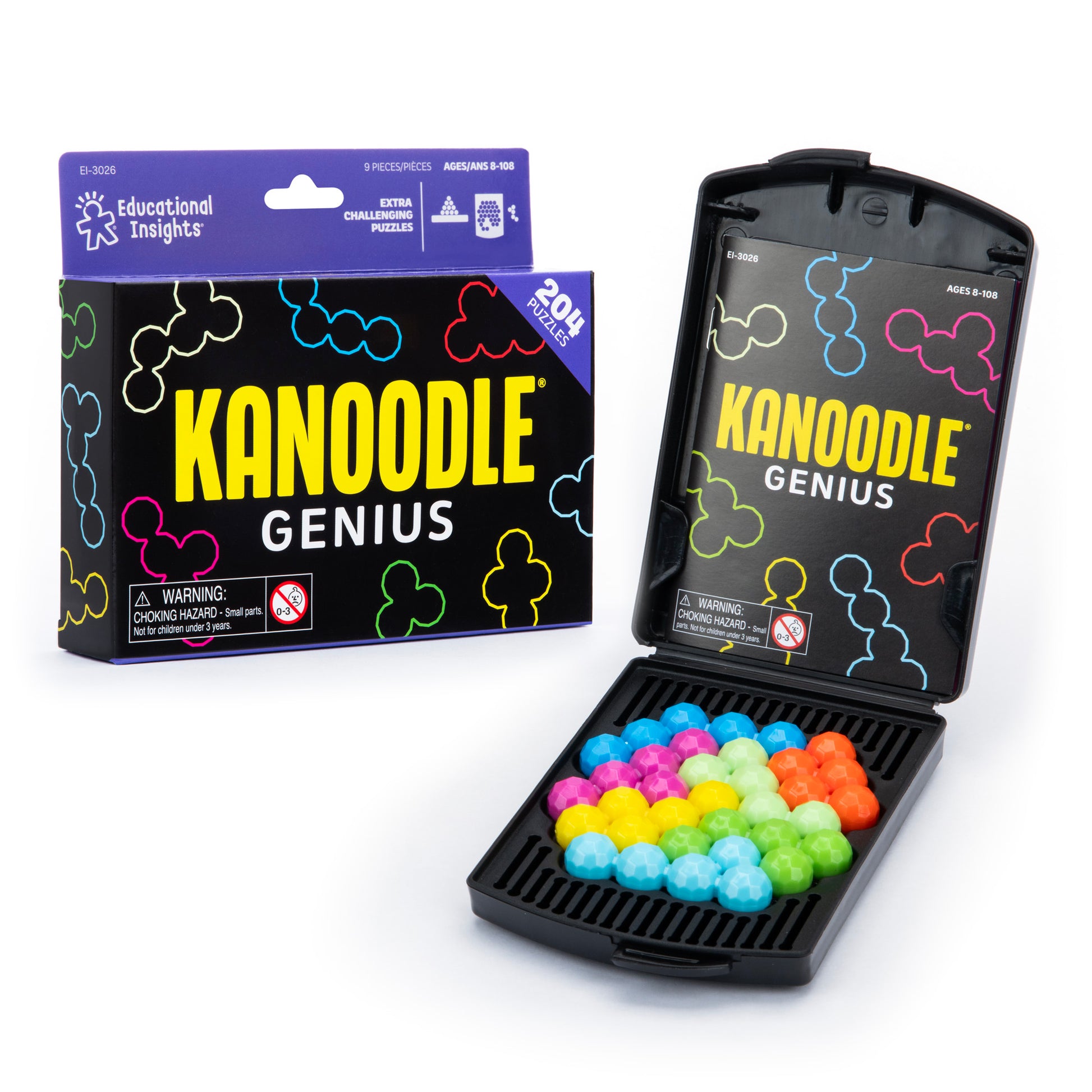2-D & 3-D Brain-Twisting Puzzles! Kanoodle Genius is a puzzle game the includes 7 puzzle pieces, 2020 advanced puzzle challenges, and 84-page puzzle book, and a a carrying case. Perfect brain teaser, travel game