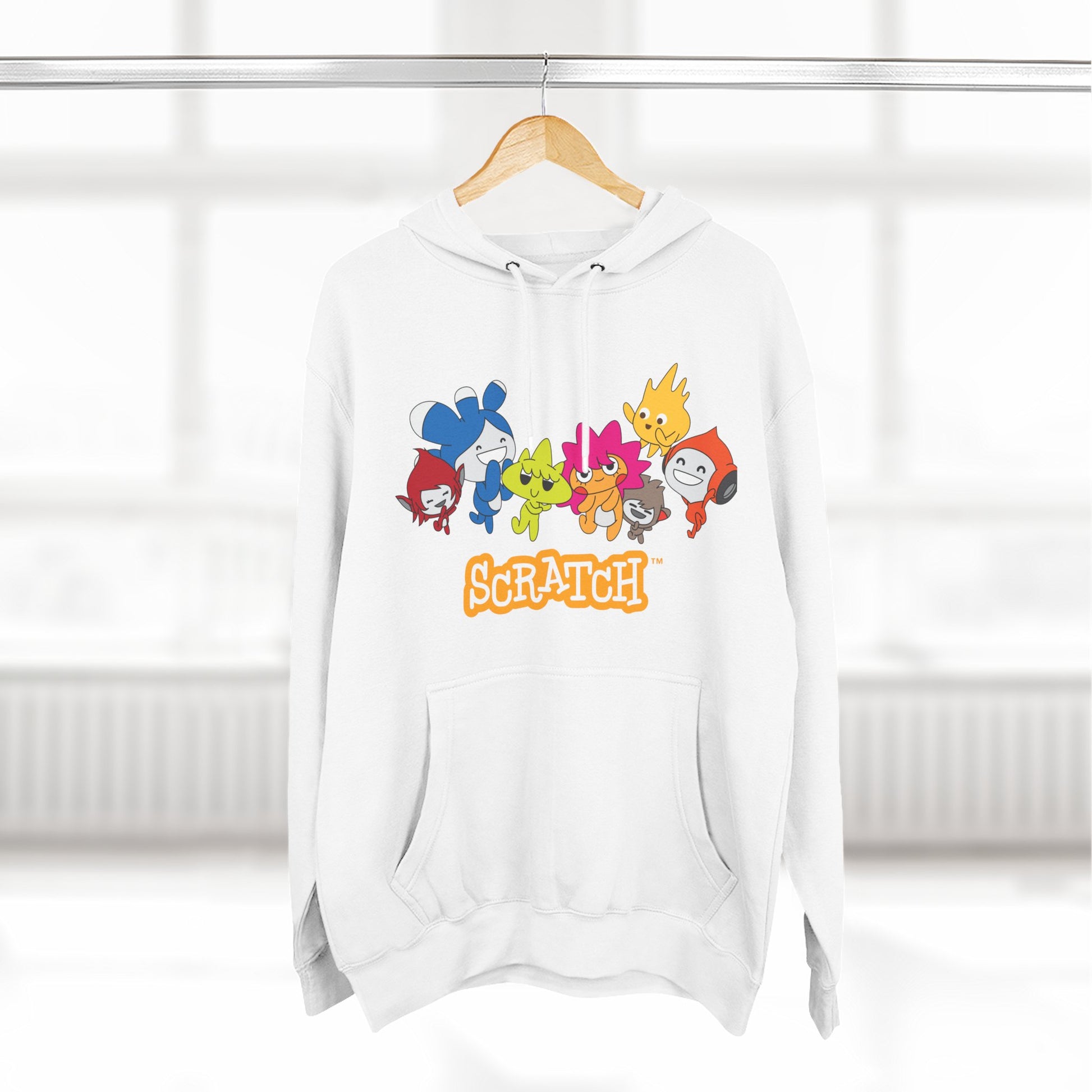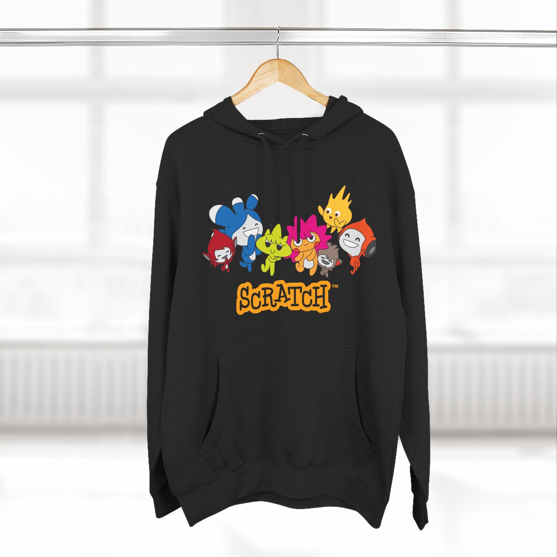 This cozy hoodie brings playful color and soft comfort together. Lightweight but substantial, the three-panel hood and roomy kangaroo pocket create a relaxed silhouette that invites you to curl up on cool mornings or wear out for casual meetups. The front art—bright, friendly characters clustered above a hand-drawn wordmark—adds a cheerful, nostalgic vibe that reads youthful without feeling juvenile. Thoughtful details like twill neck tape, metal-grommet drawstrings, and durable double-needle seams keep the feel high-quality wash after wash. Choose embroidery on the chest for a textured, crafted touch or keep the printed artwork bold and vibrant against the soft fleece. It runs true to size and holds its shape with minimal shrinkage.